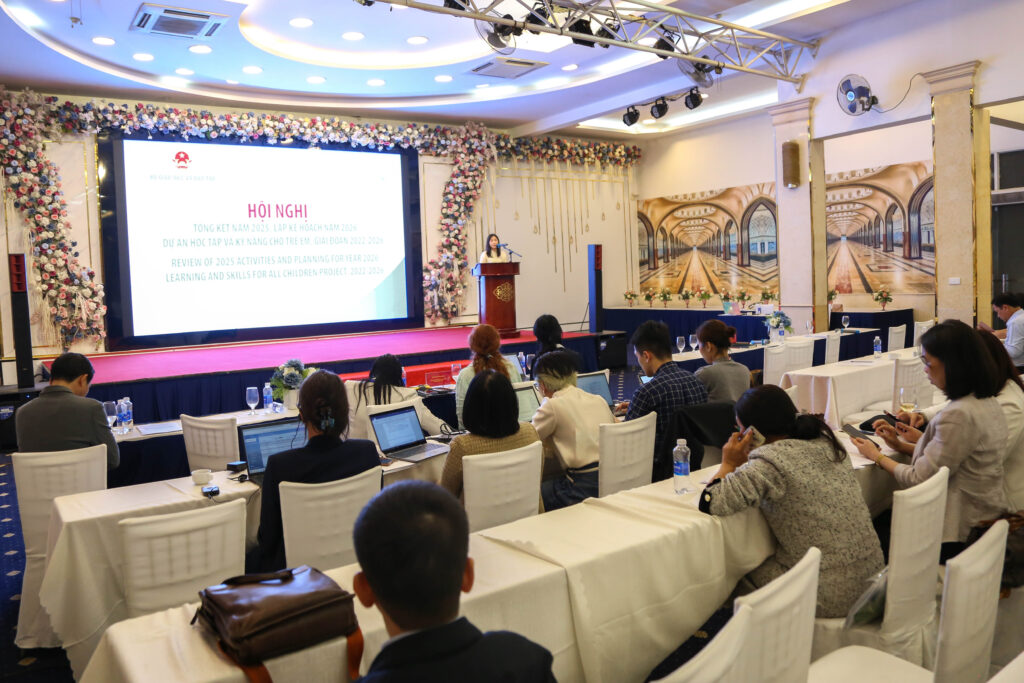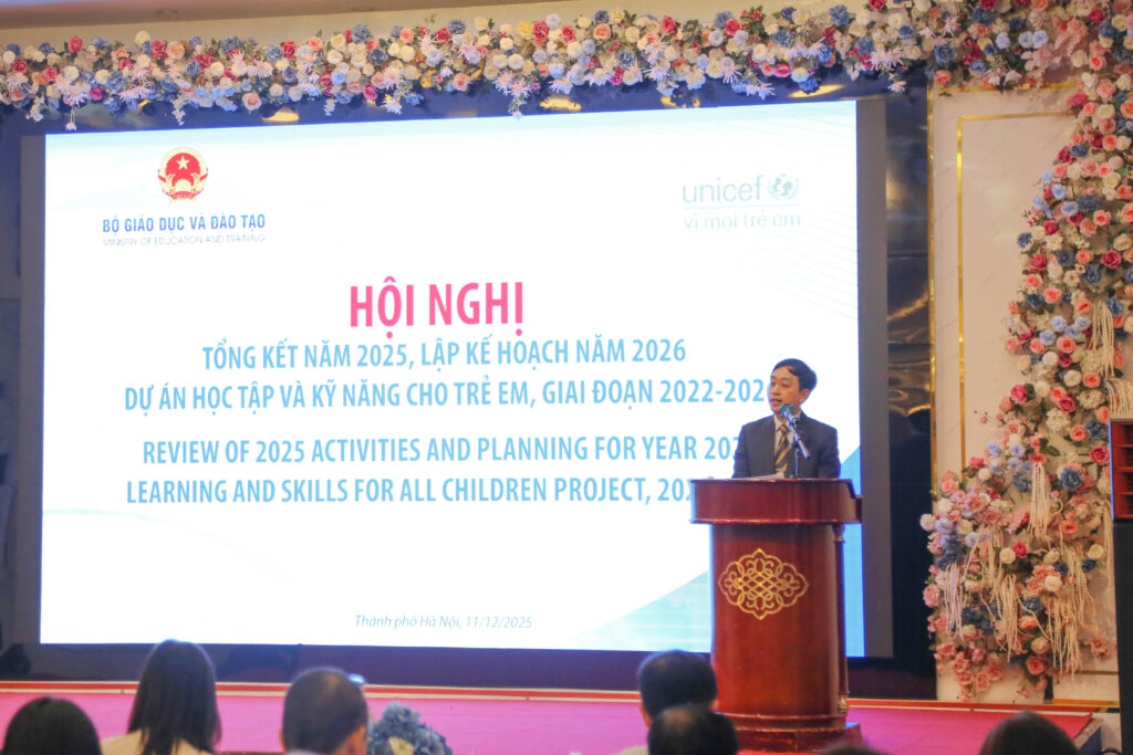 Ngày 11/12/2025 tại Hà Nội, Ban QLCDA đã phối hợp với UNICEF tổ chức Hội nghị Tổng kết năm 2025, Lập kế hoạch năm 2026 dự án Học tập và kỹ năng cho trẻ em, giai đoạn 2022 – 2026. Sau gần 04 năm triển khai Dự án Học tập và kỹ năng cho trẻ em, dự án đã cơ bản đạt được các mục tiêu và kết quả theo khung hợp tác giai đoạn 2022 – 2023, 2024 – 2025.