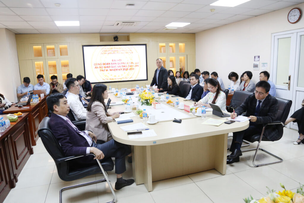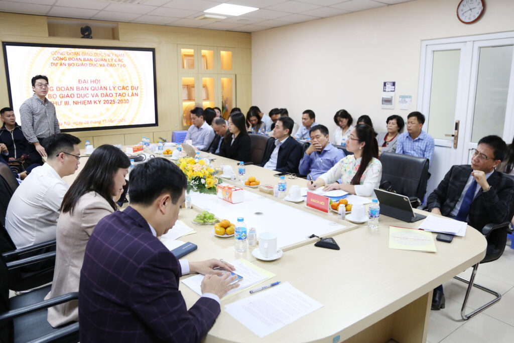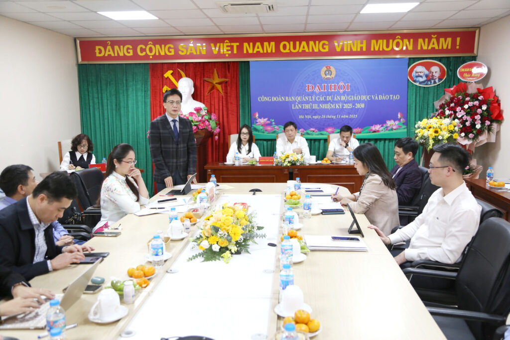 Thực hiện Kế hoạch 90/KH-CĐGD ngày 09/9/2025 của Công đoàn Giáo dục Việt Nam về việc Tổ chức Đại hội công đoàn các cấp tiến tới Đại hội Công đoàn Việt Nam lần thứ XIV, nhiệm kỳ 2026 – 2031 và công văn số 590/CĐGD-QHLĐ ngày 01/10/2025 của Công đoàn Giáo dục Việt Nam về việc hướng dẫn một số nội dung công tác nhân sự đại hội công đoàn cơ sở nhiệm kỳ 2025 – 2030, công văn số 690/CĐGD-QHLĐ ngày 21/11/2025 của Công đoàn Giáo dục Việt Nam về phê duyệt Kế hoạch tổ chức và đề án nhân sự ĐH hội CĐ Ban QLCDA Bộ GDĐT lần III, nhiệm kỳ 2025-2030, được sự đồng ý của Chi ủy và Ban Giám đốc Ban QLCDA, Công đoàn cơ sở Ban QLCDA đã tổ chức Đại hội Công đoàn cơ sở lần thứ III nhiệm kỳ 2025 – 2030.