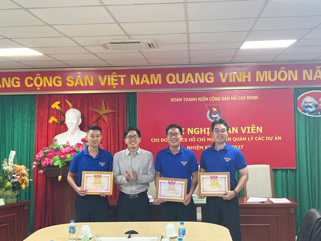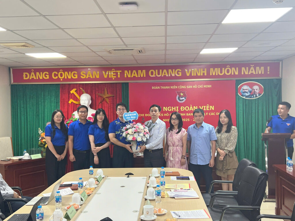Ông Nguyễn Ngọc Dũng – Bí thư Chi bộ, Giám đốc Ban QLCDA cùng Chi ủy và đại diện BCH Công đoàn Ban QLCDA tặng hoa chúc mừng Hội nghị BCH Chi đoàn TNCS Hồ Chí Minh Ban QLCDA.